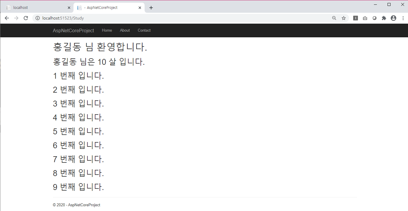 <h1>사용자 이름 : @Model.UserName</h1>