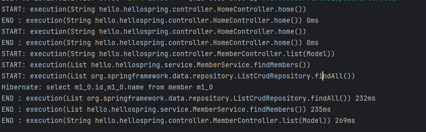 - 회원가입, 회원 조회 등 핵심 관심사항과 시간을 측정하는 공통 관심 사항을 분리