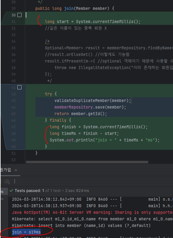 - 회원 가입 시간, 회원 조회 시간을 측정하고 싶다면?