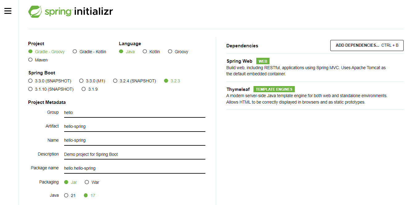 implementation 'org.springframework.boot:spring-boot-starter-thymeleaf'